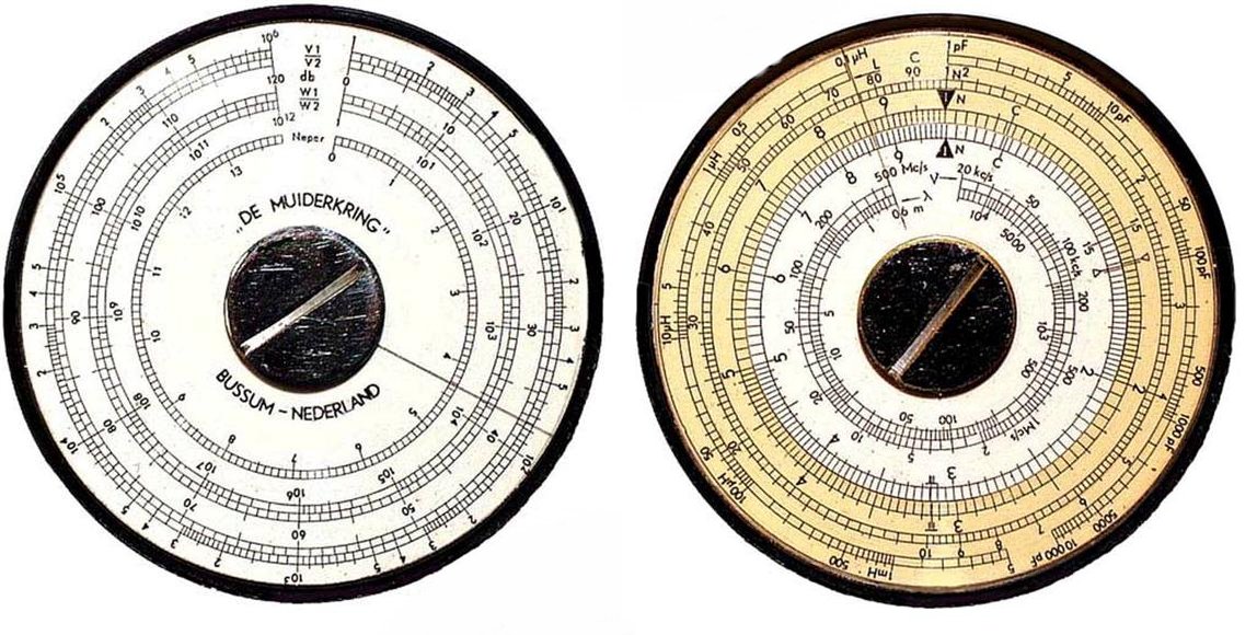 Log/tech disc of plastic 60x4 mm Front Scales: pF uH N2 N C ( D N Frequency Wavelength) Back Scales: 5) 6) = 7) 8) |