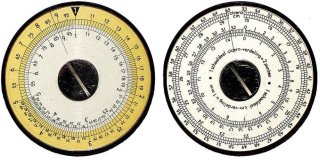 ALRO PATENT System ALRO 200R Made in The Hague, Holland Dimensions: 125x135x12 mm Patents No's (stamped on metal hub): USA 2,117,155; France 808,295; Gr. Britain 443689; Belgium 413,897; Germany 643,571; Holland 41,324 Front Scale S, T, S&T, kW, N2, N ( N , N2, R, N3) Cover Scale: Decimal/fraction, Log spiral scale Acquired from the Netherlands, made possible by a gift from Robert L. Allison of Ballard, Washington. |