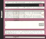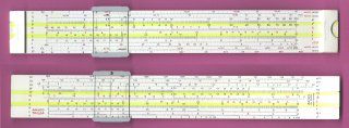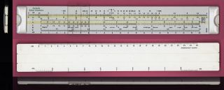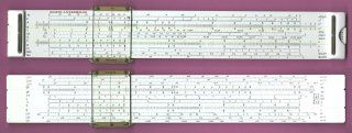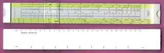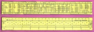 This slide rule is a hybrid of a slide rule and a slide chart, designed