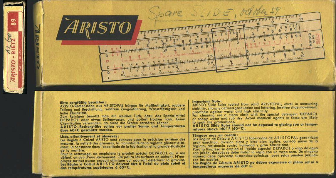 and discontinued mahogany wood models. The first System Darmstadt from D&P was sold in 1939. Aristo stayed in the slide rule business until the end of 1978, a run of 106 years. Aristo was one of the most important slide rule manufacturers world wide.