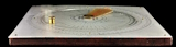 Appoullot T3 LogZ Spiral Slide Rule Made in France, Invented by L. Appoullot in Paris, France. Front Scale: C, L, 3 revolution number scale, special root scales, tangent & sine scales. Scales wrap in a curious artistic way. Outer scales have accessory vernier scales for increased precision. Note: 3 revolution spiral number scale is about 140 cm long. Material: 30 cm diameter irregularly shaped enameled aluminum discs, with two transparent celluloid cursors.. |