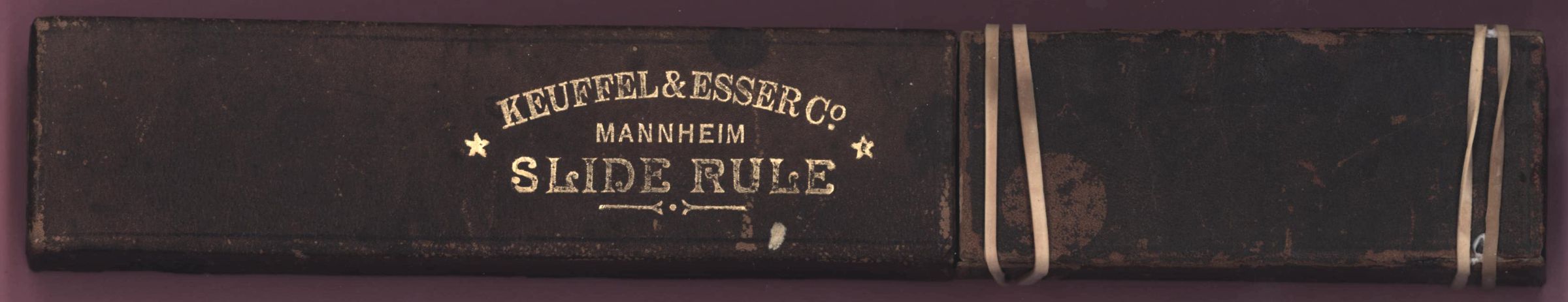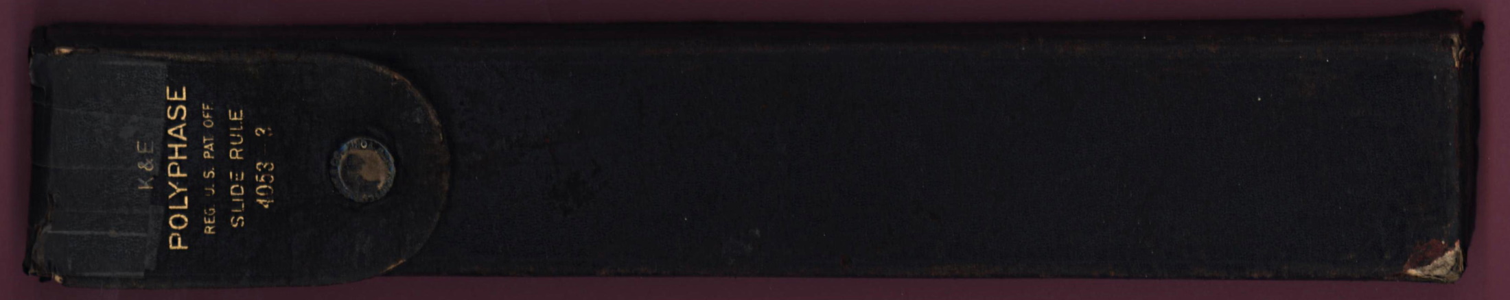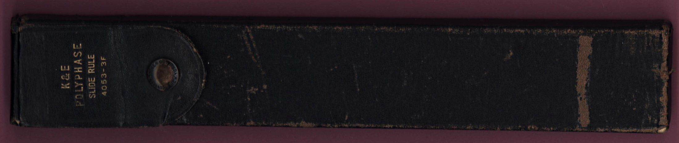 K&E N9081-3 Doric Log Log Decitrig sn65395 Made in U.S.A. by Keuffel & Esser Co., New York Note: All Labels are Italics. Inverse scales (normally red) lean left, all other lean right. Front Scale: LL01, K, A [ B, T Cot, ST, S Cos ] D, L, LL1 Back Scale: LL02, LL03, DF [ CF, CIF, CI, C ] D, LLL3, LL2 Note: Original owner: Robert W. Kingston. Marked on handmade leather sleeve Bob Dehn Collection gifted by wife Fran Dehn of Menlo Park, California.