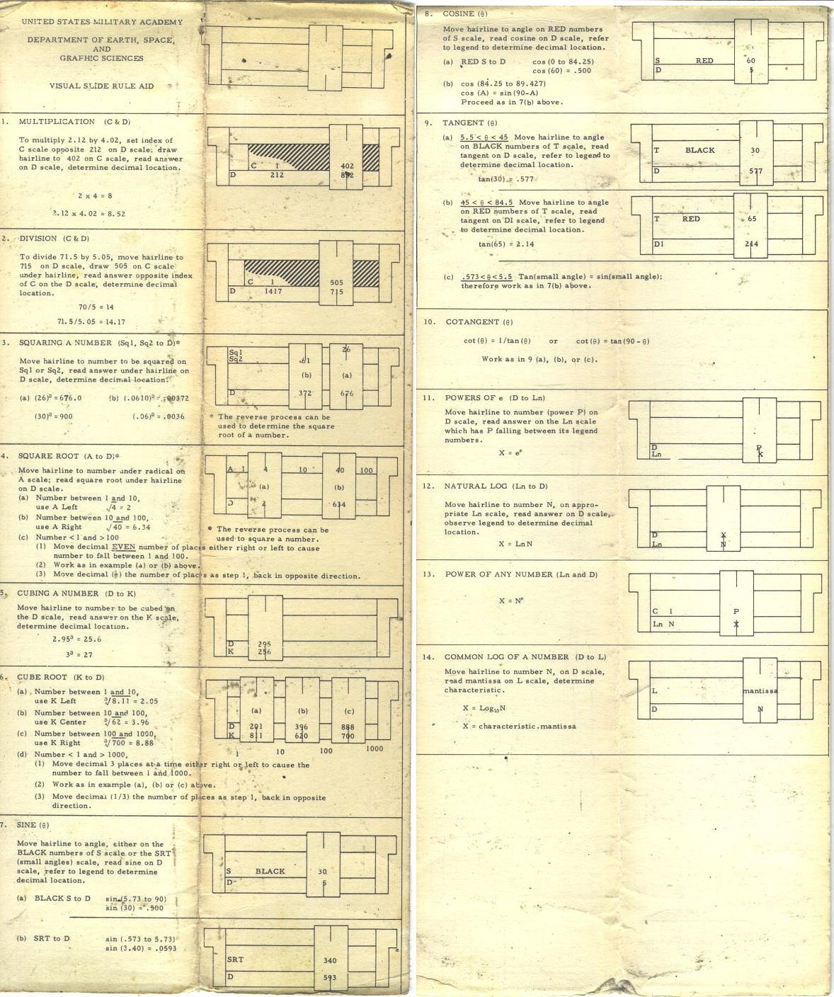 K&E 68-1100 Deci-Lon 10 Made in U.S.A. - SN 225540 (1971) Front Scale: Ln-3, Ln-2, Ln-1, Ln-0, A [ B, T Cot, SRT, S Cos, C ] D, DI, K Back Scale: Sq1, Sq2, DF [ CF, CIF, L, CI, C ] D, Ln0, Ln1, Ln2, Ln3 Donated by Jeff Ilseman, Longmont, CO, Jeff Ilseman was issued this slide rule in 1971 at the U.S. Military Academy at West Point. Jeff graduated with the class of '75, motto Courage and Drive, and has worked a Program Manager in the computer mass storage industry. Jeff is a generous supporter of ISRM with additional donations of 'Slide Rule Calculator's which he acquired while working at Texas Instruments, which can be seen in the Calculator Gallery