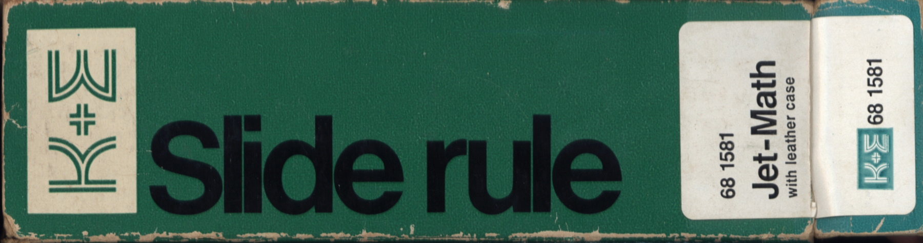 K&E 68-1581 Jet-Math Modern Polyphase sn030576 1968 Made in U.S.A.- Note: Model number on stock is 4161-1. ©1973 manual. Note: All plastic stock, all black scales Note; Has model number. Black K&E © logo. Front Scale: LL01, L, K, A [ B, T, ST, S ] D, DI, LL1 Back Scale (C2.. Artwork) LL02, LL03, DF [ CF, CIF, CI, C ] D, LL3, LL2 Gift of JoAnn Lynn of Washington, D.C. Joel L. Lynn Collection |