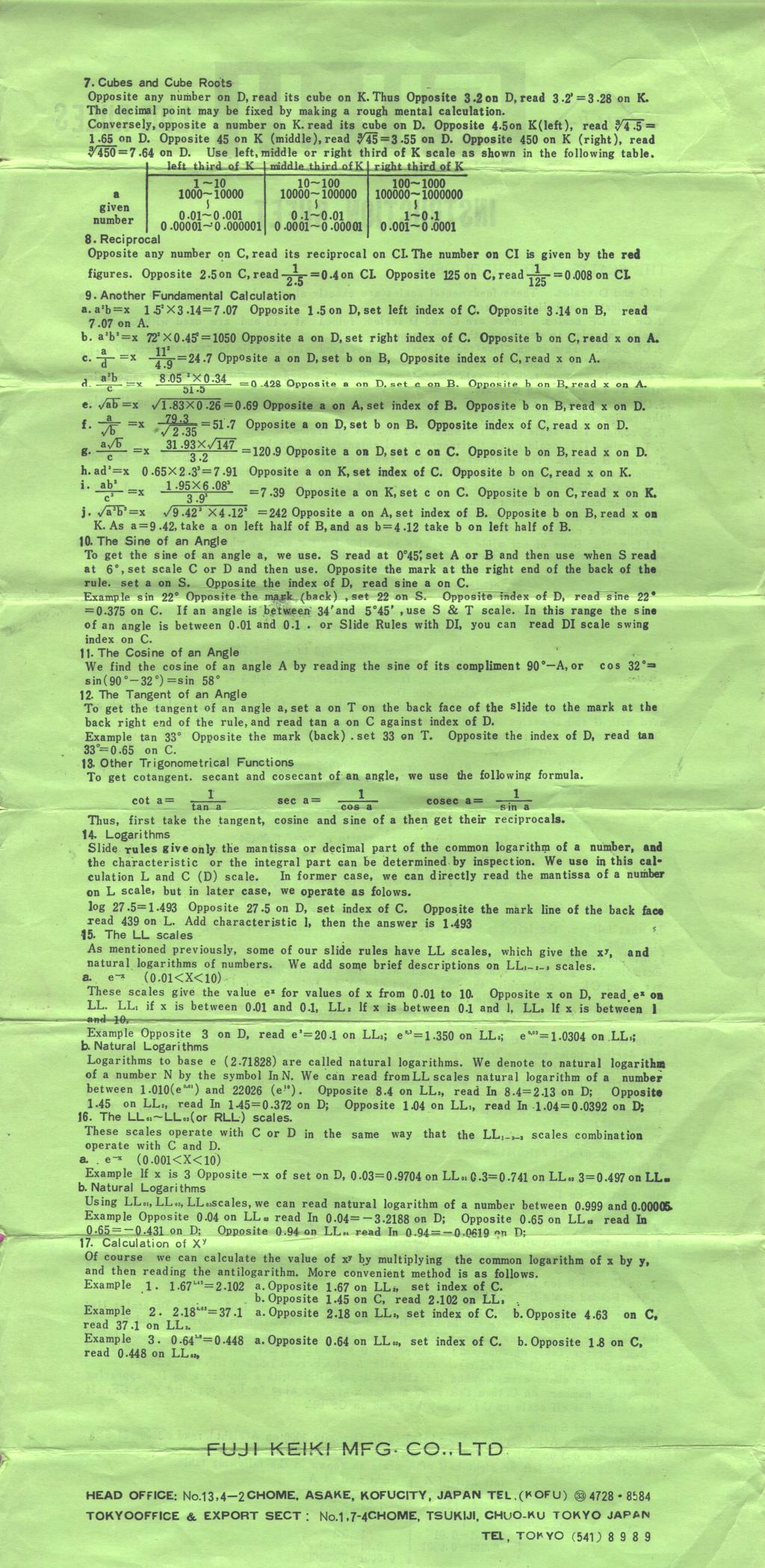 M410 - Gifted with slide rule by Philip Stanley Advergi Slide Rule Instructions Advergi Japan 6 pages folded from 1 sheets |